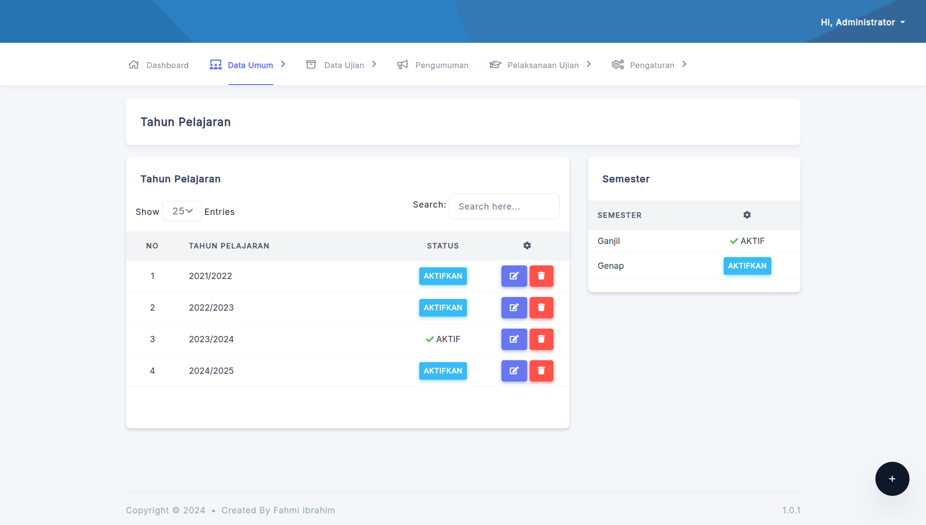 Tahun Pelajaran: Mengatur tahun ajaran aktif.
