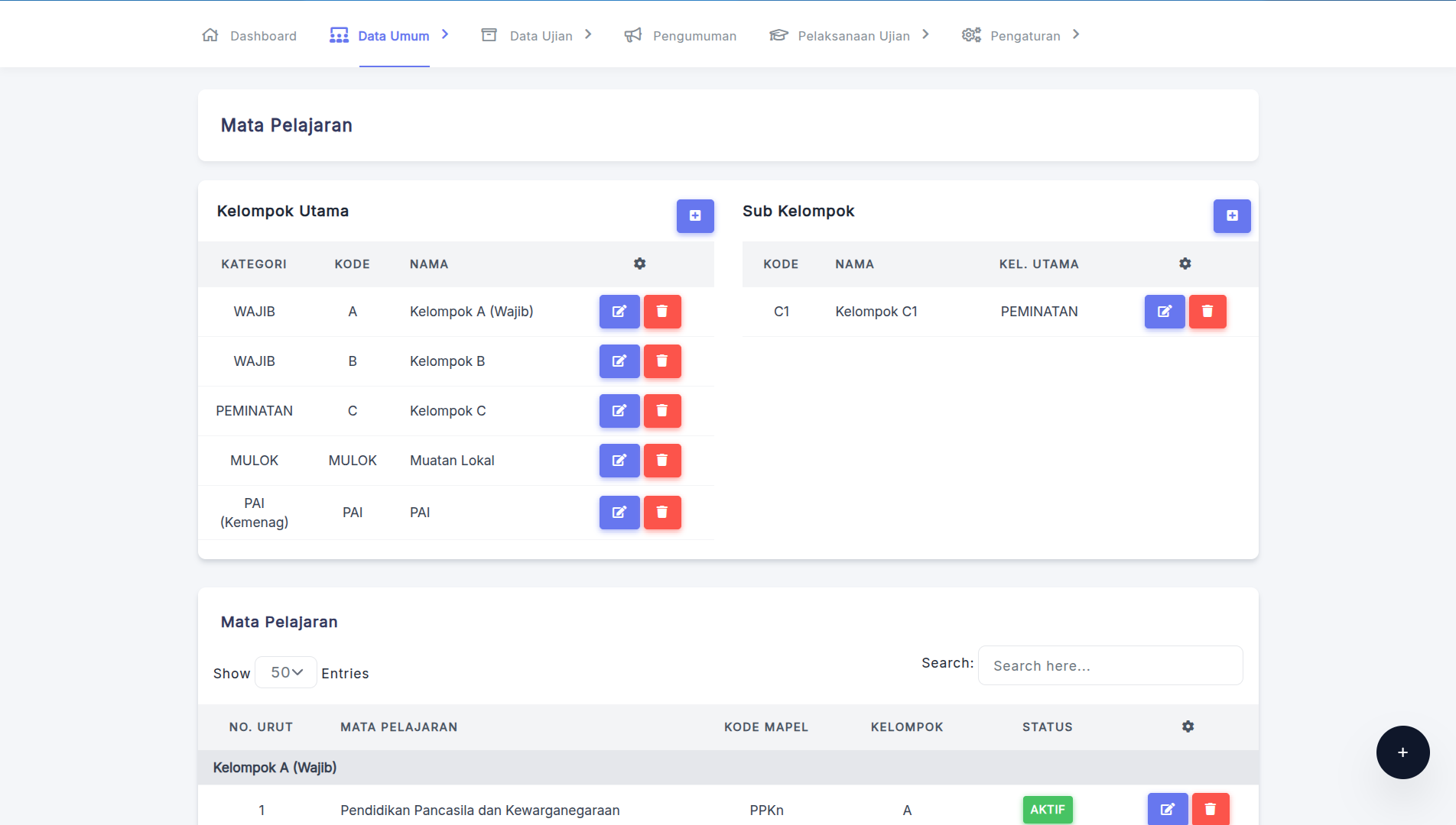 Mata Pelajaran & Jurusan: Mengelola daftar mapel dan jurusan.