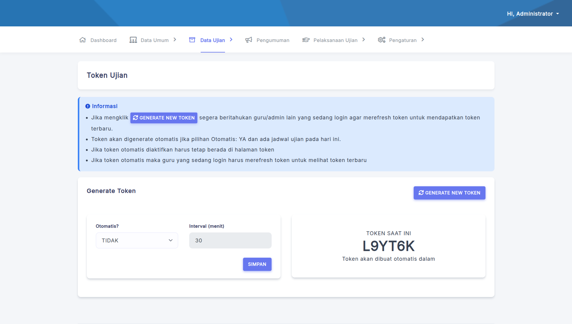 Token Ujian: Sistem token untuk keamanan akses ujian.