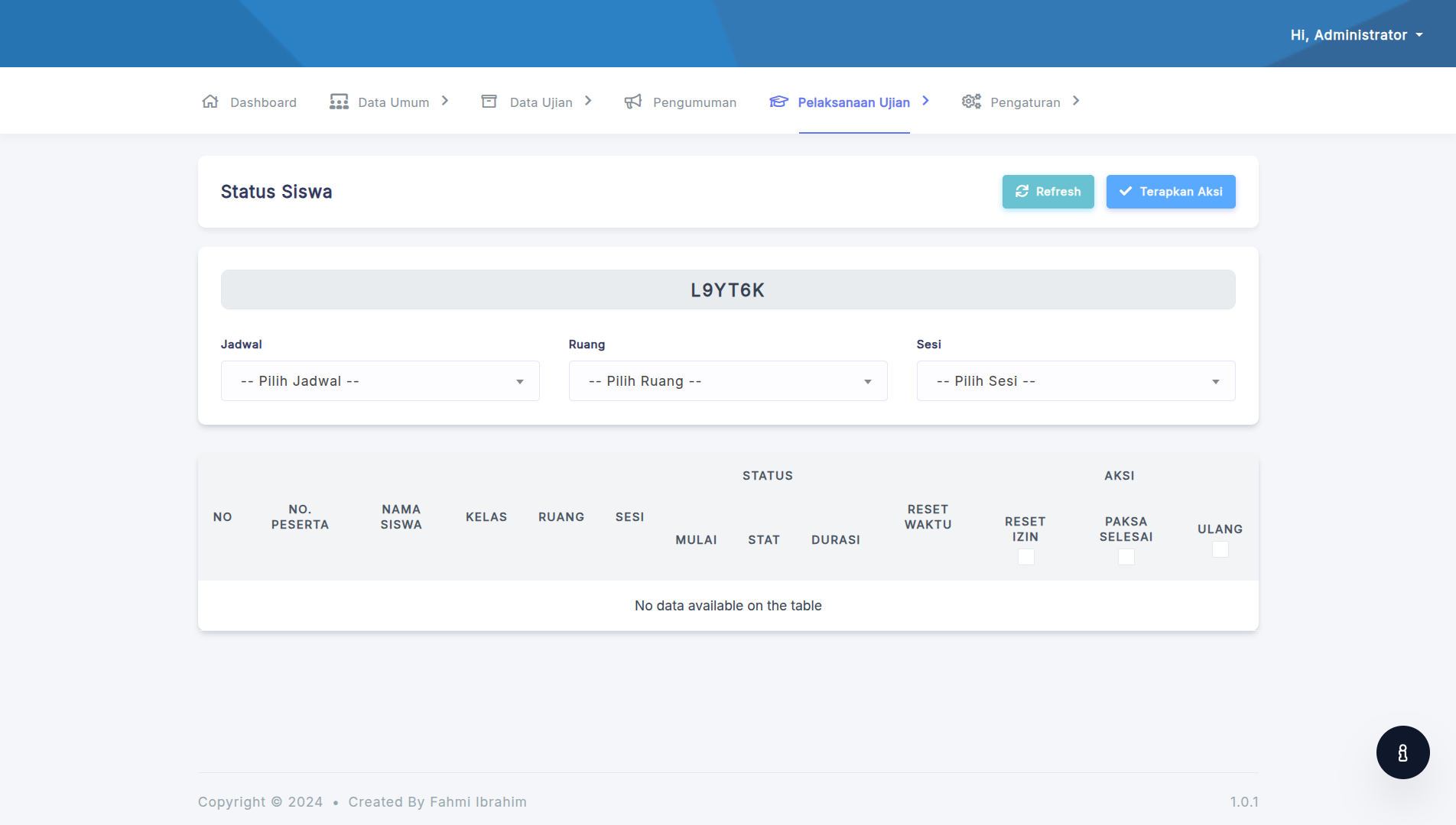 Sesi & Ruang: Pembagian sesi ujian dan alokasi ruang peserta.